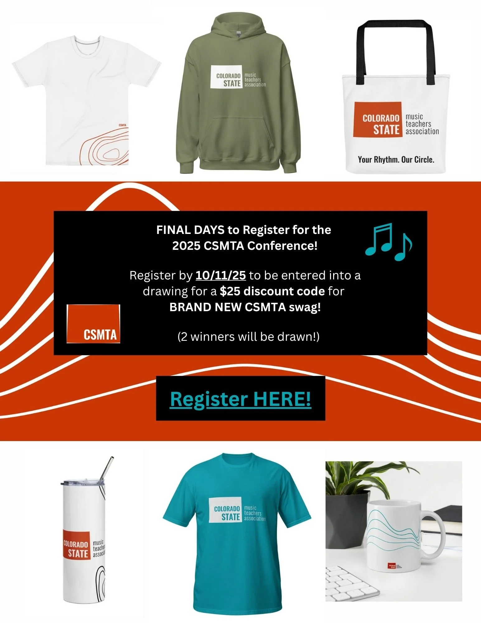 Register by 10/11/25 to be entered into a drawing for a $25 discount code for BRAND NEW CSMTA swag!!
